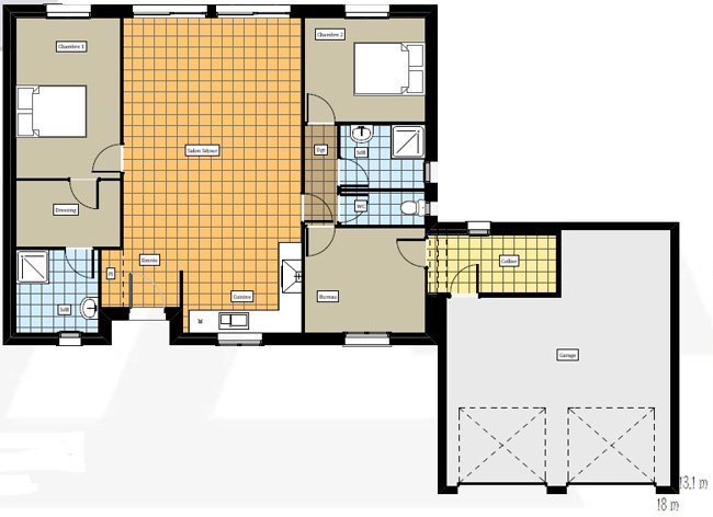Modèle plain-pied avec 2 chambres. idéal primo accédant.