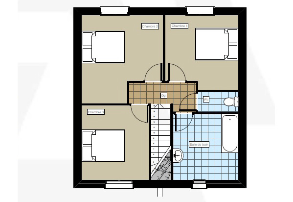 Modèle de maison avec combles aménagés disponible en plusieurs surfaces.