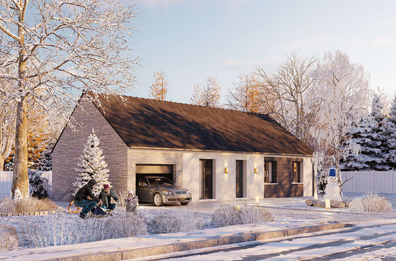 Maison de plain-pied avec possibilité de choix du nombre de chambres.