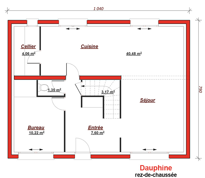 Le rez-de-chaussée propose une entrée accueillante avec placard, un vaste séjour/salon avec accès direct à la cuisine et son cellier. il y a également un studio indépendant de plus de 20m² aux normes handicapés. l'étage réunit une salle de bains, 4 chambres dont une suite parentale avec dressing et salle d'eau privative. le modèle dauphine 150 a des prestations de qualité labellisées nf. ce modèle existe également en 110 et 130m2.