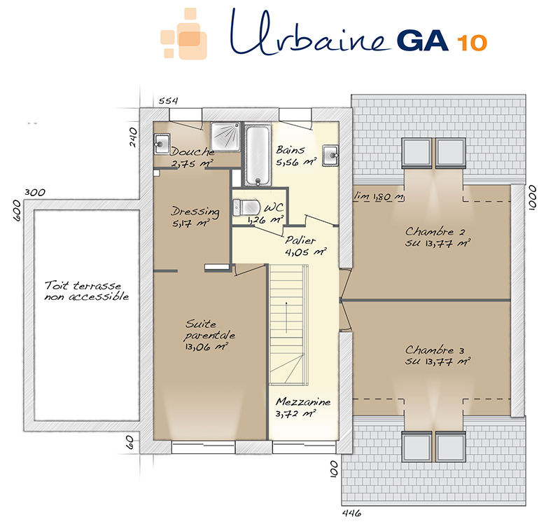Ce modèle avec combles aménagés est composé au rez-de-chaussée : cuisine, 1 salon-séjour de 36m2, 1 chambre, 1wc et 1 garage accolé. à l'étage, 4 chambres, 1 salle de bains avec wc, 1 salle d'eau. modèle décliné en 7 versions.