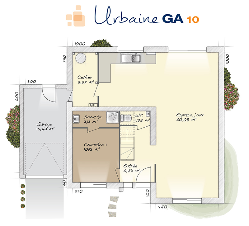 Maison contemporaine avec étage et garage accolé, qui allie modernité et tradition régionale. au rez de chaussée, entrée, grand espace jour de 50 m2 avec cellier, 1 chambre, 1 salle d'eau, wc, garage. à l'étage, suite parentale avec dressing et salle d'eau, 2 chambres, salle de bains, wc. cette ligne est bien adaptée aux contraintes urbaines grâce à une conception et à une architecture optimisées pour profiter pleinement de son terrain en tou