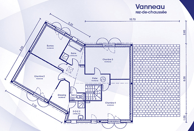Modèle traditionnel en l, la maison fontenoy 119 offre une surface habitable de 119 m² répartie sur 2 niveaux. le rez-de-chaussée comprend une belle entrée, un salon-séjour de plus de 35m², une cuisine semi-ouverte qui pourra accueillir une verrière intérieure, un bureau et des toilettes indépendantes. à l'étage, 3 chambres dont 1 avec dressing, une lingerie, une salle de bain, des toilettes indépendantes.