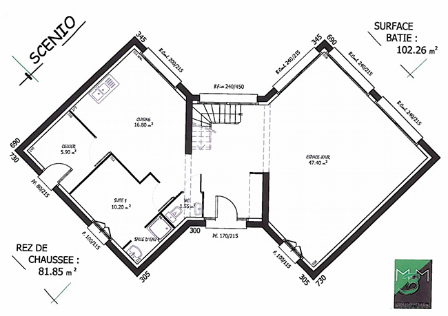 Par sa simplicité et l'harmonie de ses volumes, le modèle paris vous offre, sur un seul et même niveau, un vrai confort de vie au quotidien. conviviale et fonctionnelle, elle sait s'adapter à tous les lieux et tous les styles de vie ! séjour + cuisine : 31,85 m2 chambre 1 : 11,01 m2 chambre 2 : 10,09 m2 chambre 3 : 9,97 m2 wc : 1,96 m2 salle de bains : 5,58 m2 local technique : 3,24 m2 dégagement : 3,70 m2 total hab. : 77,40 m2