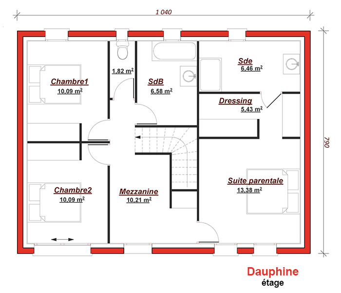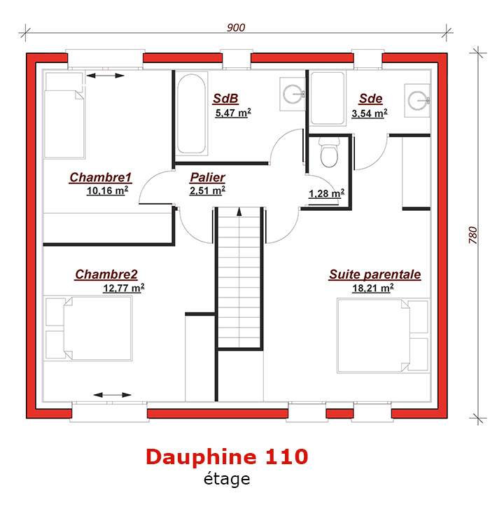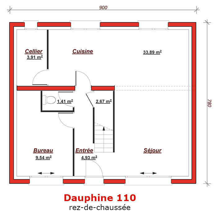 La dauphine 110 vous offre au rez-de-chaussée un espace salon/séjour et cuisine ouverte de plus de 30m², un bureau ainsi qu'un cellier, des wc indépendants et une vaste entrée. a l'étage, la dauphine 110 vous offre une salle de bains, 2 chambres ainsi qu'une suite parentale avec dressing et salle d'eau. ce modèle existe également en 130 et 150m²