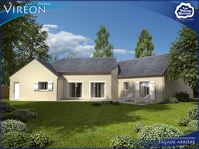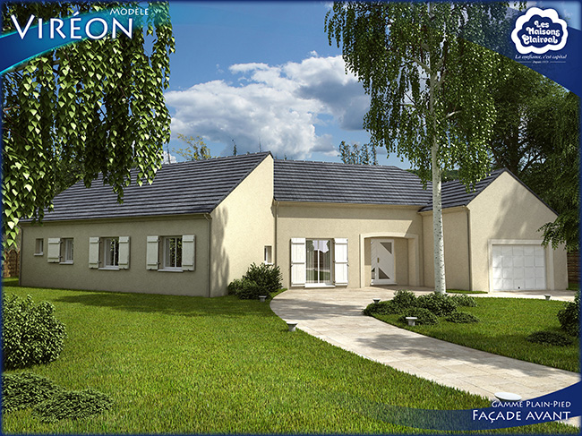 Elle se compose : cuisine us avec cellier, salon-séjour, 4 chambres, salle de bain, 2 wc, garage. ce modèle existe en bbc, thpe et rt2005 à partir de 131403 euros hors terrain, raccordement, branchement, décoration.