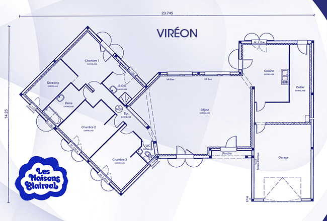 Ce modèle présente un grand salon de 49m2 au centre de la maison, une cuisine avec cellier qui donne accès au garage de 27m2. la partie nuit se compose d'une suite parentale avec dressing et salle d'eau privative, 2 chambres, une salle de bains , wc indépendant.