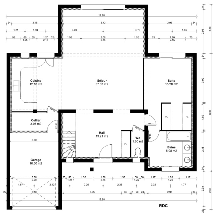 Le rez-de-chaussée, avec ses 91 m2, est très confortable et ses grandes pièces modulables permettent de multiples aménagements.